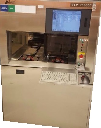 The Lam 9600 is intended to etch aluminum metal and TiW layers with highly vertical sidewalls suitable for 0.35 um linewidth. The plasma is a medium-high density, transformer coupled plasma, similar to ICP sources, allowing separate control of coil (top electrode) power and platen (lower electrode) power. In the chamber, the wafers are mechanically clamped to a water cooled platen and He backside gas provides coupling. Cl2/BCl3 chemistry is used for Al and SF6 for TiW layers. The TiW etching and Cl-passivation step (also using SF6) may be done in the exit lock or in the main chamber. Cl-chemistry is expected to be effective on Al2O3 layers as well as silicon trenches with minimum undercut.