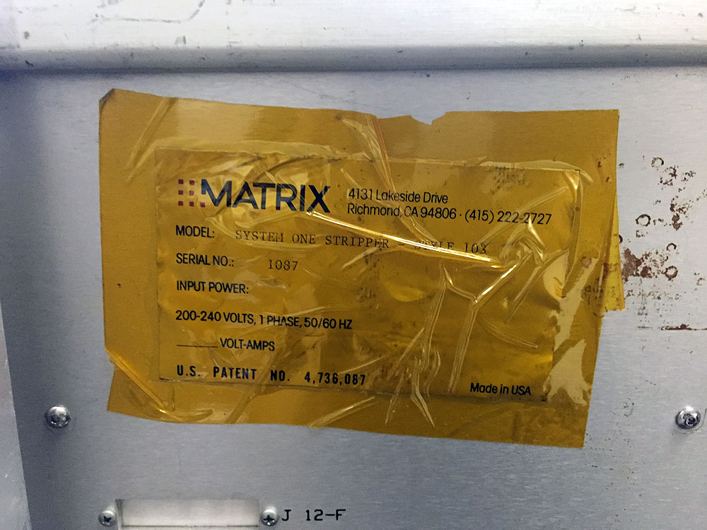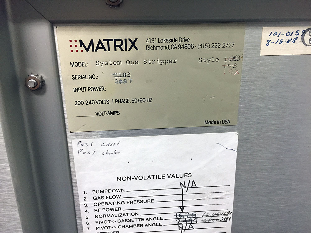 Model: Matrix System One Stripper Matrix 103  semiconductor process equipment
