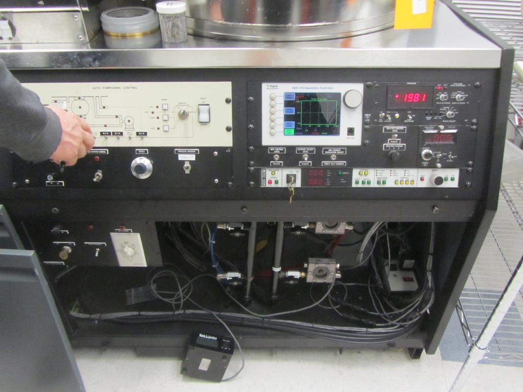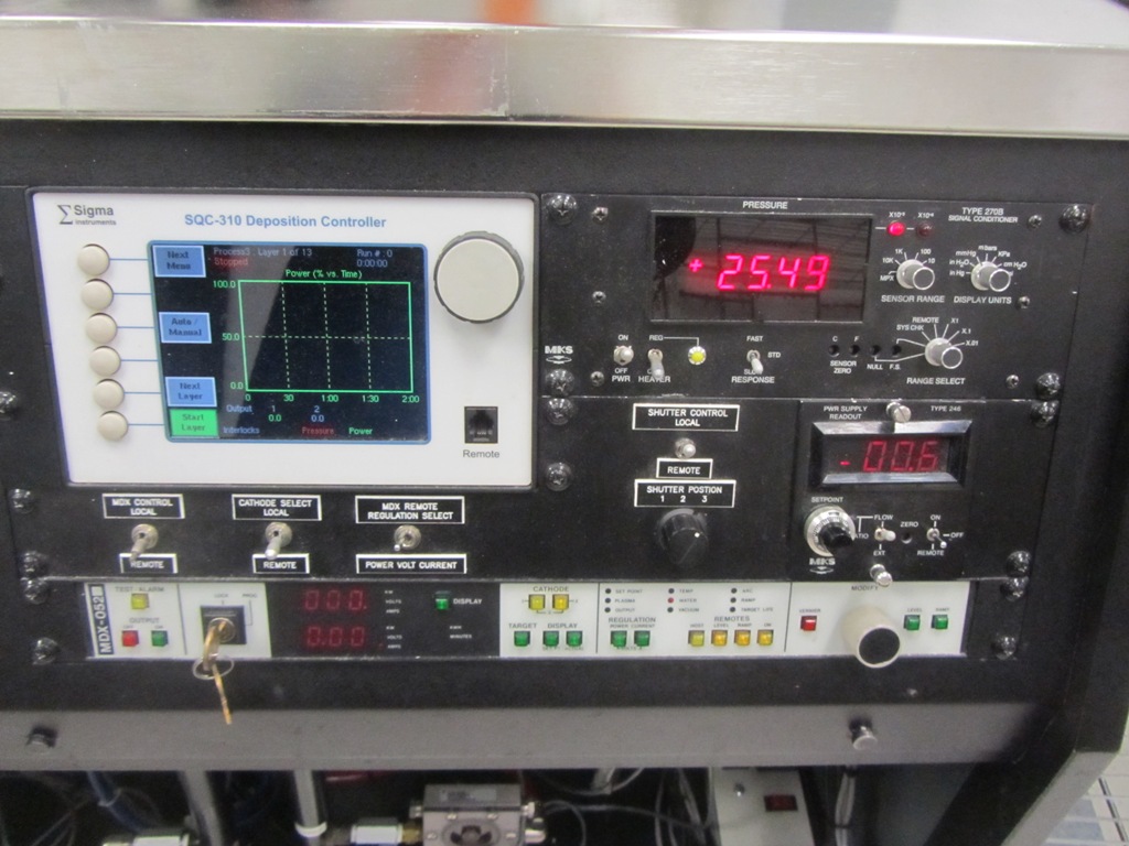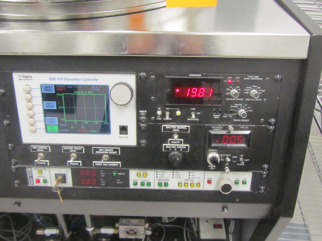 Model 4400 is designed for use in production environments or process development. Up to three 8-inch circular cathodes and a 350oC quartz lamp heater may be installed in the process chamber to accommodate a variety of processes. An optional RF power sputtering network enables the RF/RF Co-deposition of two different materials. Precise stoichiometries of graded interface may be easily achieved.