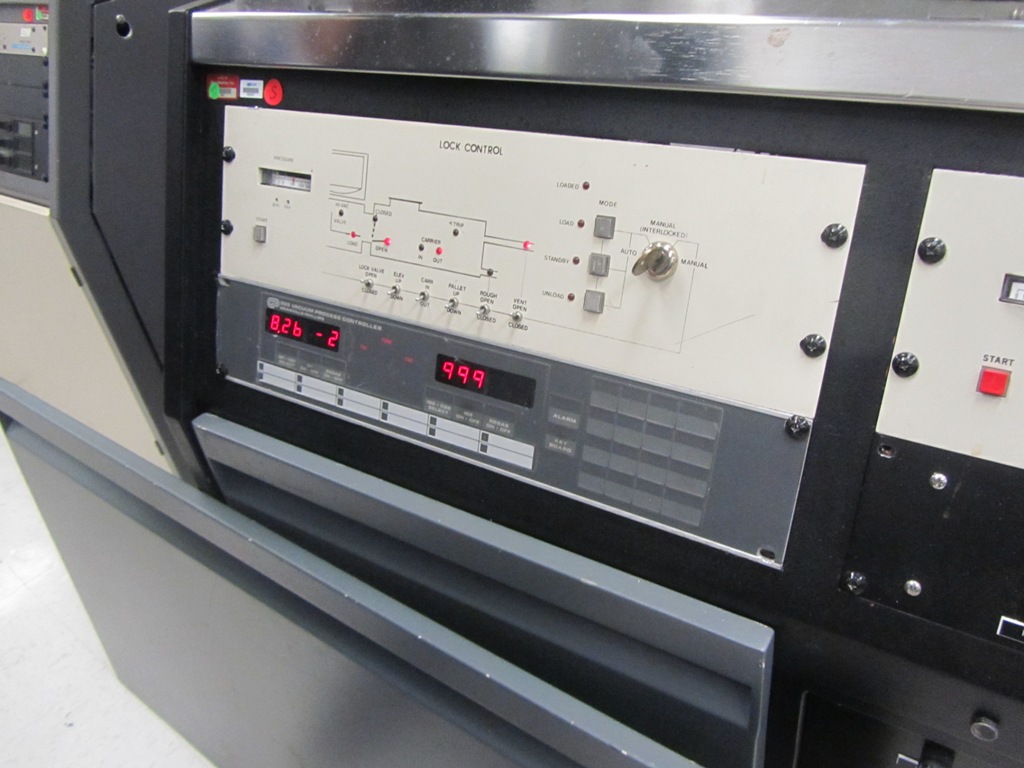 All Perkin-Elmer 4400 Series systems are equipped with ion and thermocouple gauges. A wide-range gauge controller monitors and digitally displays vacuum levels from 10-11 to 200 microns providing continuous monitoring of operating pressure. Additional thermocouples provide inputs to the automatic pumpdown control and automatic lock control.
