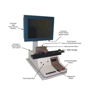The Tencor Instruments M-Gage™ 200 with the new Upgrade Kit from seller is a Sheet Resistance Measurement System. The M-Gage™ 200 measures sheet resistance in ohms per square or milliohms per square. If specific resistivity is known, the thickness of the deposited film layer can be computed from the sheet resistance. The choice of measurement data is easily switch selectable, as is the choice of units. The Tencor M-Gage 200 Sheet Resistance Measurement System can accommodate 125mm (5”) wafers as well as the standard 2″, 3″, and 4″ wafers.